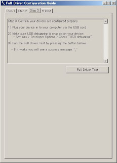 んで、最後に、Nexus7本体の[設定] ->[開発者向けオプション] ->[USBデバック]にチェックをいれてPC本体と接続。つながるかな。。。。。