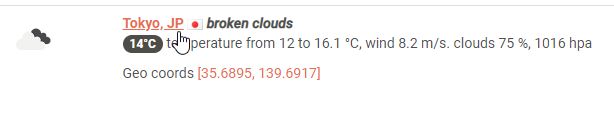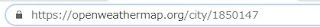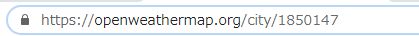 また、天気予報を表示する都市を指定するのにCity IDが必要です。City IDは一覧表(約3.8MBのテキストデータ)か、OpenWeatherのHPで下記のように都市名検索を行った際のURLでもわかります。