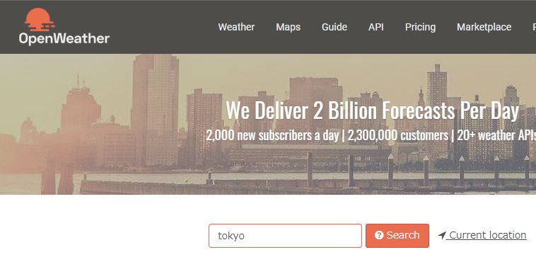 このOpenWeatherを使用するためには、API KEYが必要です。